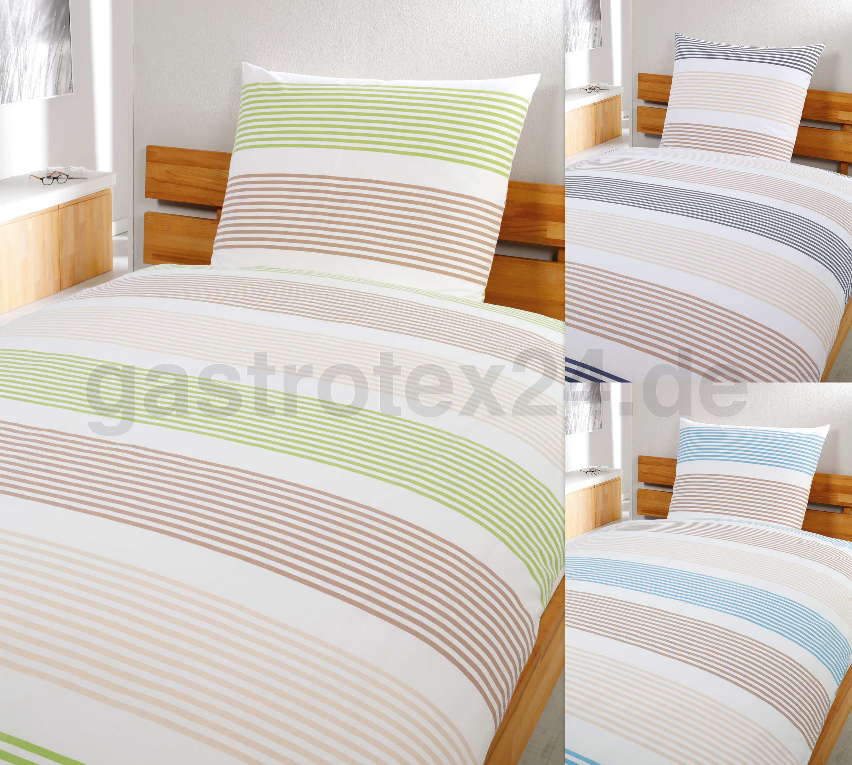 Hotel Druckbettwäsche "Dany" Bettbezug 135/200 cm mit mehrfarbigen Streifen allover. Farben: frühlingsgrün, meeresblau und anthrazit (dunkelgrau). Professioneller Objekt-Bettwäsche in gekämmter Renforce-Qualität mit Hotelverschluß, die täglich gewaschen werden kann, obwohl sie die Optik einer Privathaushalt-Bettwäsche hat. Die Bettwäsche "Dany" ist kochecht und chlorecht. Beliebte Bettwäsche in Persionen, Feriewohnungen, Pflegeheimen und co.