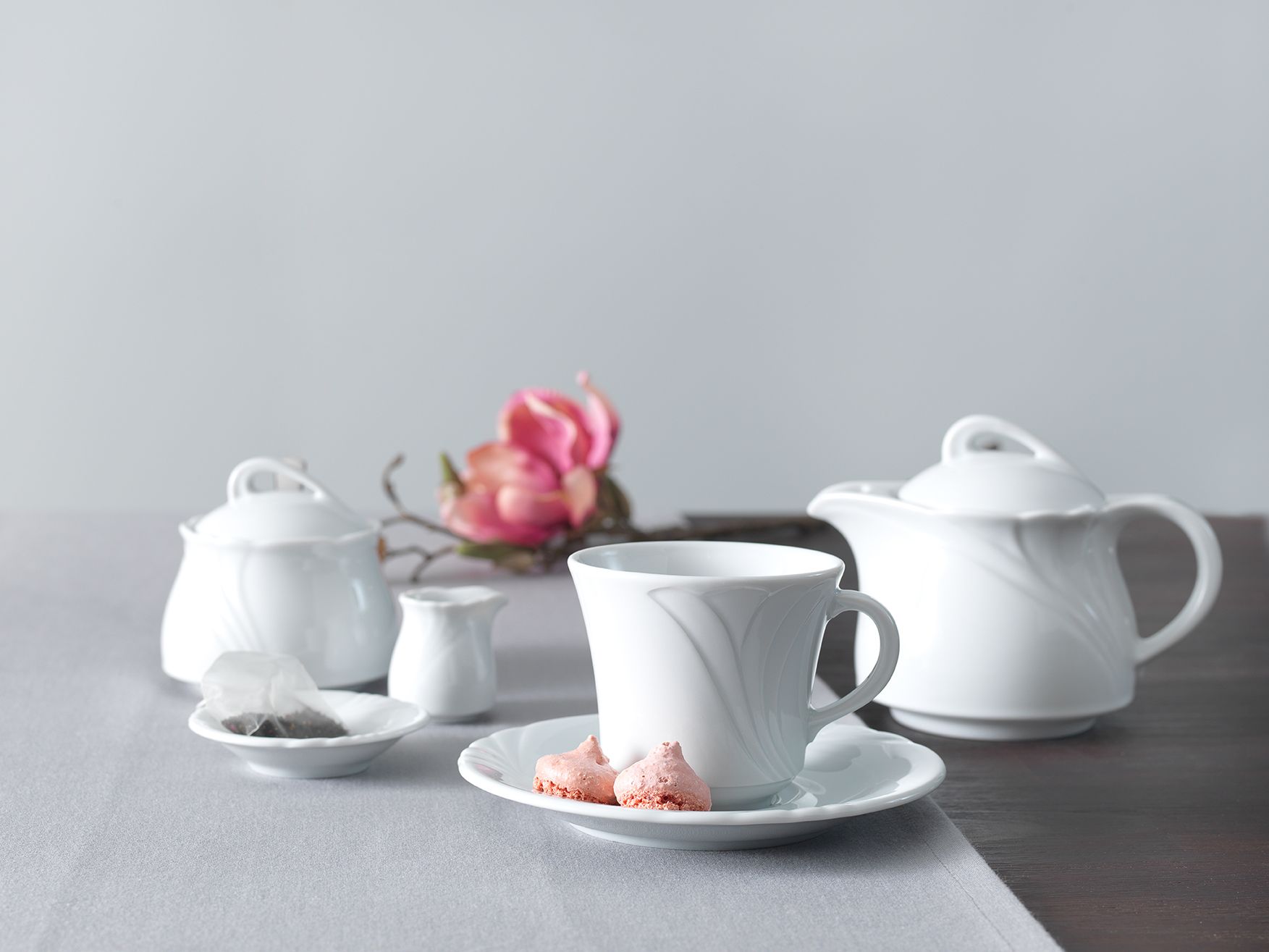 Gießer ohne Henkel 0,03 l. rund aus der Serie "Ambiente" in Farbe weiß vom großen Hotelporzellan-Hersteller Eschenbach. Die Serie "Ambiente" besticht durch das schöne 3-Wellen-Dekor auf der Fahne. Die Gießer ohne Henkel 0,03 l. wird im Hotel, Restaurant und beim Catering eingesetzt. Sie ist spülmaschinenfest und bruchkantenverstärkt. Die Verkaufseinheit ist 6 Stück pro Karton.