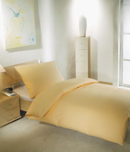Hotel-Betwäsche-Set "Laura", Garnitur 2-teilig: Bettbezug 135/200 cm + Kopfkissenbezug 80/80 cm mit 2 mm-Streifen. Farben: gold. Leichte und feinfädige Damast-Bettwäsche aus 100% Baumwolle mit 145 gr/qm für 3-4-Sterne-Hotels, Pensionen und Ferienwohnungen. Koch- und chlorechte Bettwäsche mit Hotelverschluß. Dauerserie. Lieferbar sofort ab Lager. Sondergrößen sind ebenfalls auf Anfrage möglich.