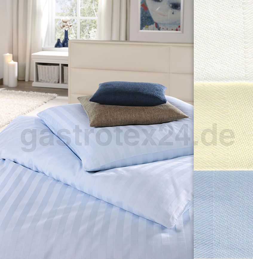 Hotel-Bettbezug "Linda" 135/200 cm mit Hotelstreifen 25 mm. Farbe: weiß, gelb, hellblau. Exrtrakräftige, strapazierfähige Objekt-Bettwäsche aus 100% Baumwollle mit 175 gr/qm für Hotel, Ferienwohnungen und Klinik. Koch- und chlorechter Bettbezug. Dauerserie. Lieferbar sofort ab Lager. Sondergrößen sind ebenfalls auf Anfrage möglich.
