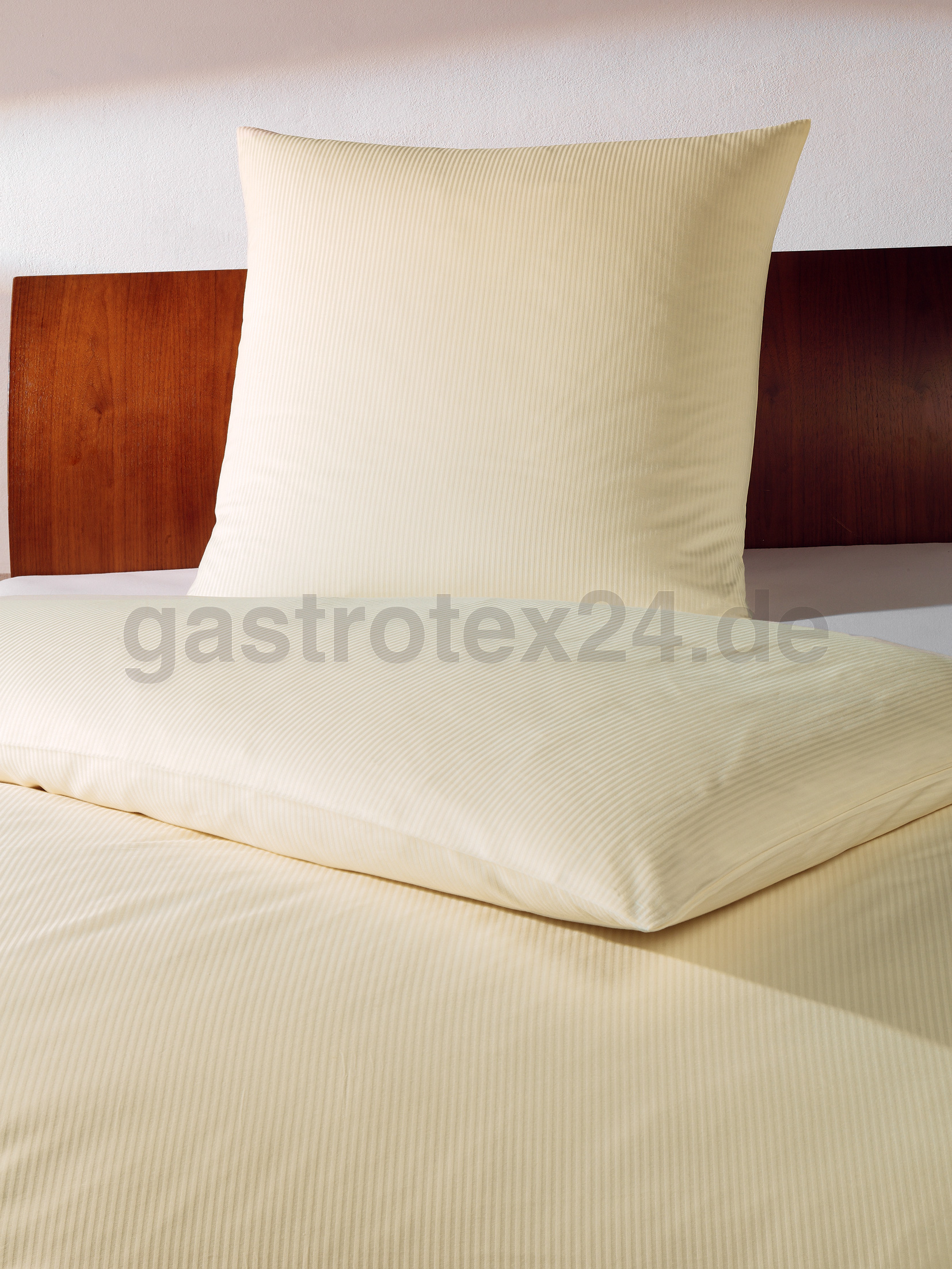 Hotel-Kopfkissenbezug "Lisa" 80/40 cm mit 4 mm-Streifen. Farben: sekt. Leichte und strapazierfähige Objekt-Bettwäsche aus 100% Baumwollle mit 140 gr/qm für Hotel, Ferienwohnungen und Klinik. Koch- und chlorechte Bettwäsche. Dauerserie. Auftragsbezogene Anfertigung mit Lieferzeit: ca. 3 Wochen. Weitere Sondergrößen sind ebenfalls auf Anfrage möglich.