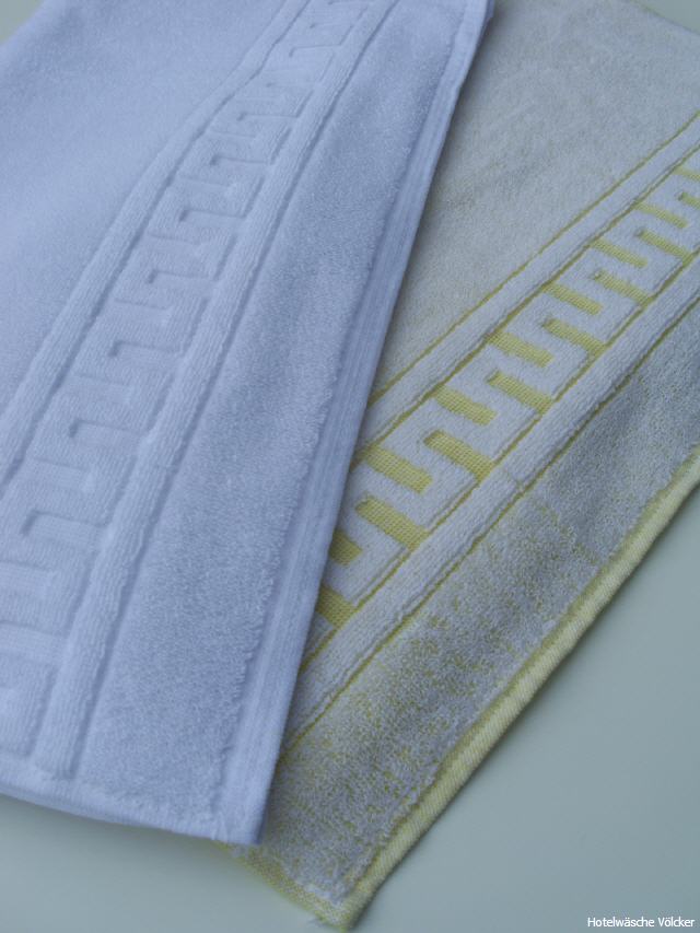 Hotel-Duschtuch weiß "Lübeck" 70/140 cm, mit Griechenbordüre*, Zwirnfrottier, 100% Baumwolle, Ringgarn, Doppelnähte vierseitig, Gewicht: 420 gr/qm, koch- und chlorecht