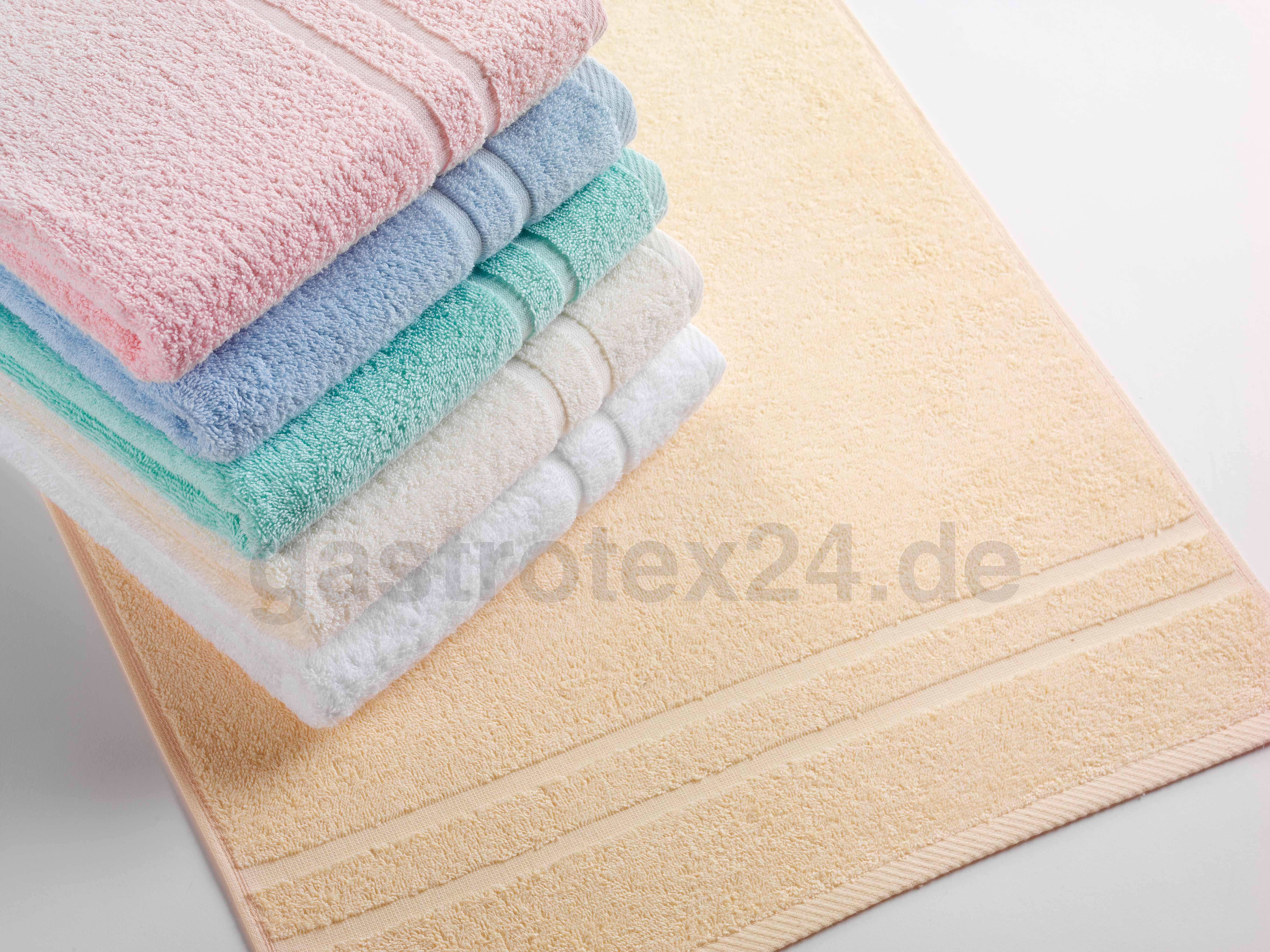 Handtuch "Manhattan" 50/100 cm, Walkfrottier, mit Flachstreifen-Bordüre, 100% Baumwolle, Doppelnähte längseitig, Gewicht: 400 gr/qm, indanthrenfarben, kochecht, chlorecht, Farben: weiß, sekt/creme, gelb, apricot, mint, bleu