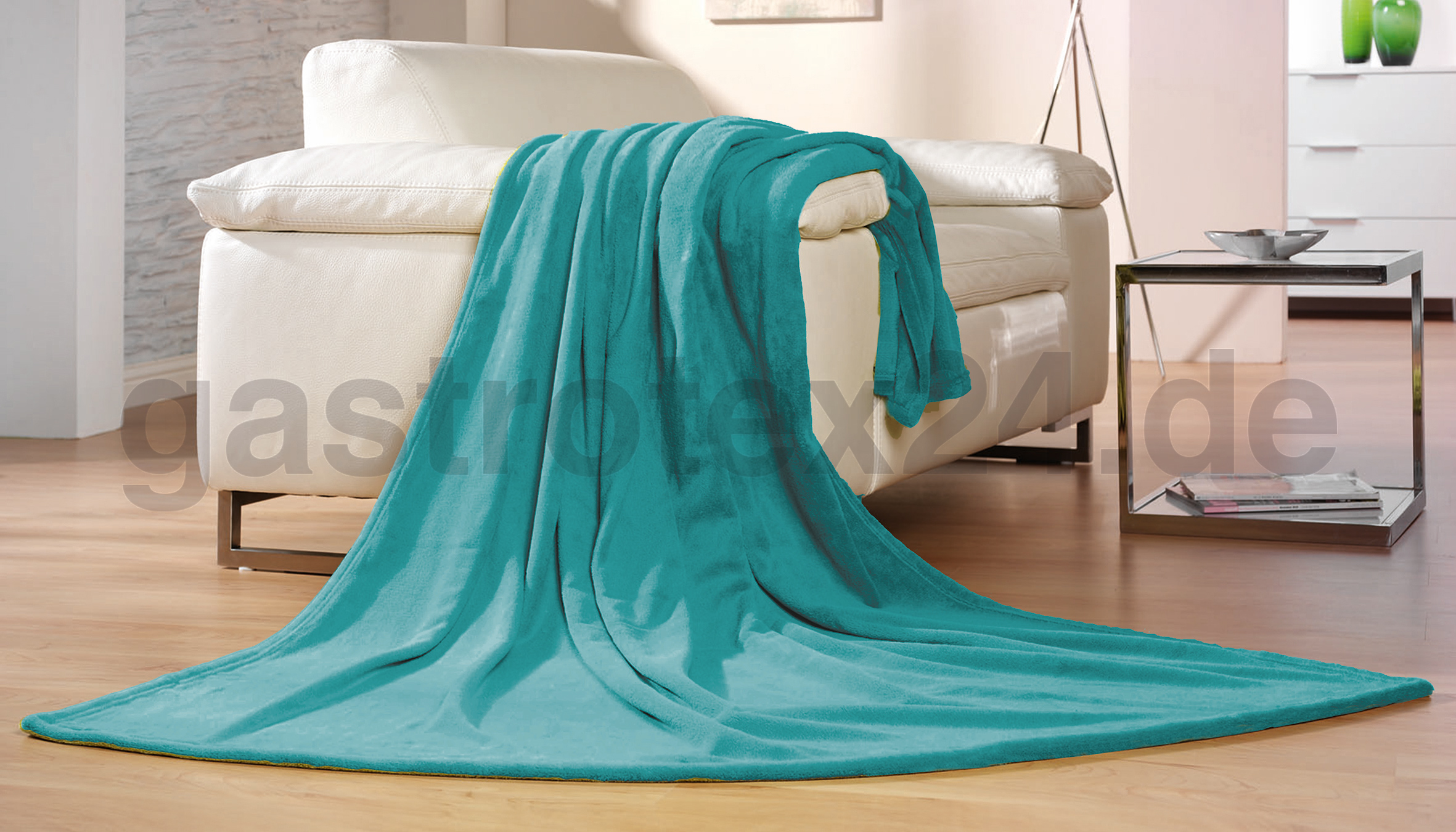 Die pflegeleichte Mikrofaser-Decke "Memphis Premium" 150/200 cm in der Farbe petrol wird als Tagesdecke/Wohndecke/Zusatzdecke im Hotel & Pension eingsetzt. Angenehm wärmend, leichtes Waschgewicht. Bei Bedarf ist Kochwäsche möglich.