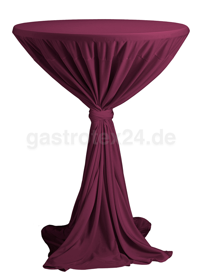 Stehtischüberzug "President" 80-90 cm rund bordeaux mit Bindeschal, Gewicht: 170 gr/qm, 40% Wäsche, 1 Punkt-Trocknung, nicht chloren, Farbe: bordeaux