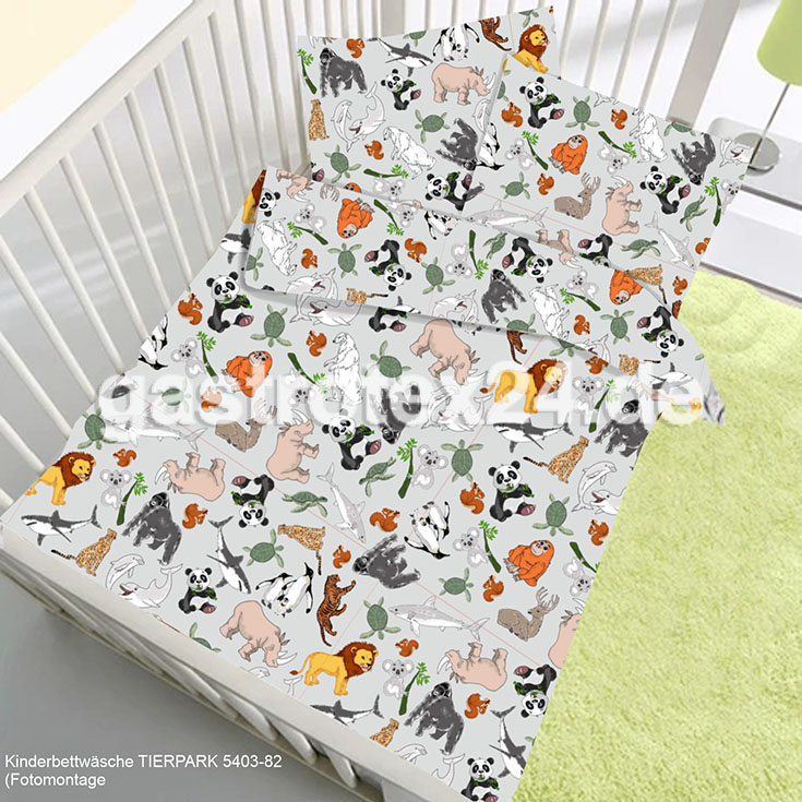 Kinderbettwäsche-Kopfkissenbezug "Tierpark" 40/60 cm mit mehrfarbigem Druck verschiedene Tiere und Hotelverschluß. Farben: mehrfarbig bunt. 100% Baumwolle, Renforce, Gewicht: 140 gr/qm. Koch- und chlorechte Bettwäsche. Dauerserie. Lieferbar sofort ab Lager. Sondergrößen sind ebenfalls auf Anfrage möglich.