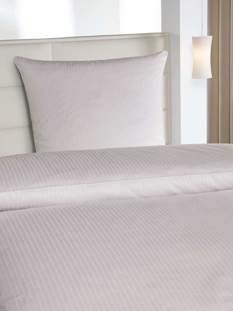 Hotel-Bettwäsche-Garnitur "Vera" 135/200 + 80/80 cm, Farbe: silber mit Wechselstreifen 2/12 mm aus 80% Baumwolle/20% Polyester mit Hotelverschluß. Farbe: silber. Damast-Bettwäsche mit leichtem Waschgewicht und unverkennbaren Wechselstreifen. Feinfädige Qualität. Elegante Optik. Mit Trendfarbe silber. Koch- und chlorechte Kopfkissenbezüge für Hotels bis zur 3 bis 4 Sterne Hotels.Sondergrößen sind ebenfalls auf Anfrage möglich.