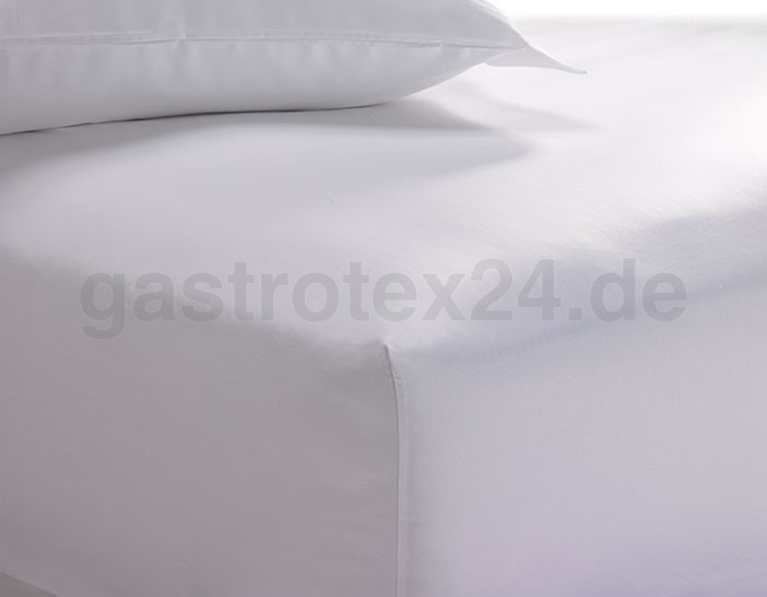 Preisgünstige weiße Spannbettlaken in extradicker Profiqualität für Boxspringbetten der 3 bis 3 Sterne plus Hotelkategorie, Pensionen, Gästehäusern und gewerbliche Ferienwohnungen.