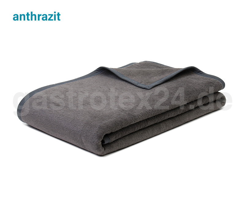 Wohndecke "Arizona" 150/200 cm, Farbe: anthrazit (dunkelgrau), 58% Baumwolle, 32% Polyacryl, 10% Polyester, Gewicht: 450 gr/qm, Wäsche: 30°C (Schonwaschgang), nicht trocknergeeignet. Pflegeleichte Wohdecke / Kuscheldecke für Hotels mit samtweichem Einfaßband. Flauschig weiche Decke, pflegeleicht und angenehm wärmend.